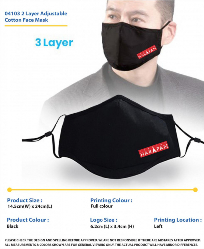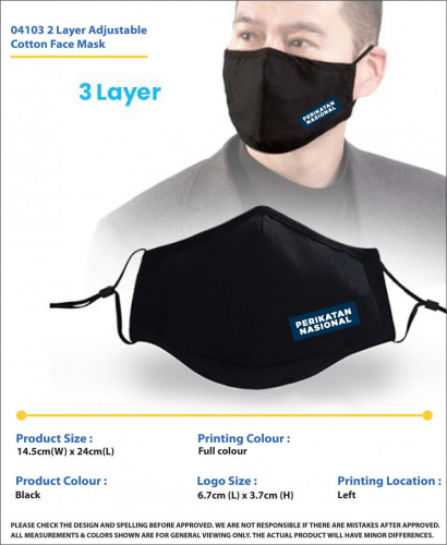 04103 3 LAYER ADJUSTABLE COTTON FACE MASK