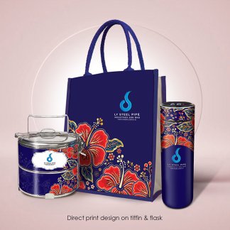 BS29112 Malaya Hibiscus 3 in 1 Gift Set Flask 500ml with LED-Tiffin-Laminate Canvas Bag with Polyester – Custom Made