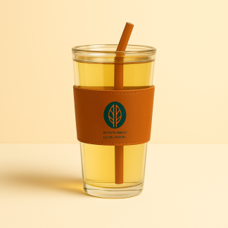 07003 Anti Leak Glass Coffee Tumbler 400ml with PU Leather Sleeve