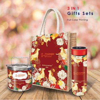 29104 3D Success 3 in 1 Gift Set ( Jute Bag + Flask + Tiffin)-Custom Made