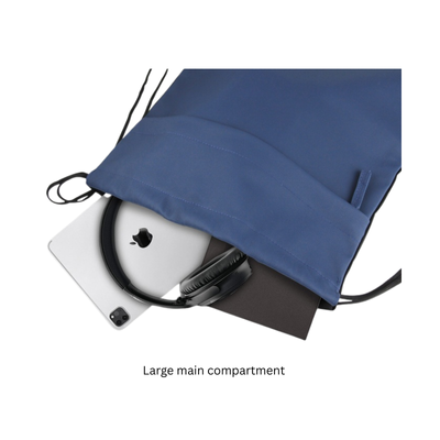 1. Large main compartment with nylon drawstring closure for quick access.