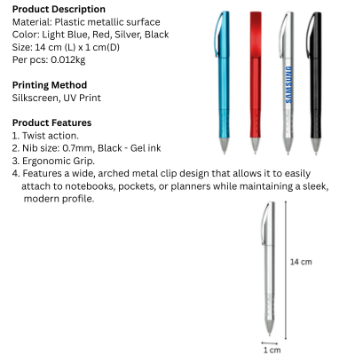 Remark: White Printing is not feasible on dark-colored pens due to material specification