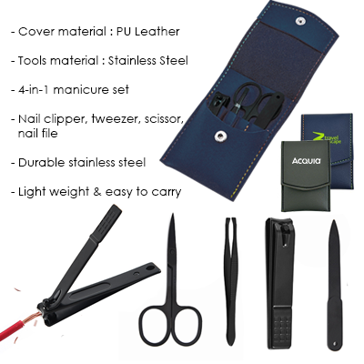 -4-in-1 manicure set: Nail clipper, tweezer, scissor, nail file