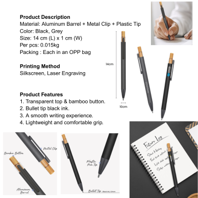 Material: Aluminum Barrel + Metal Clip + Plastic Tip