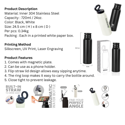 04421 Stainless Steel Thermos with Straw Lid and Magnetic Ring – 720ml