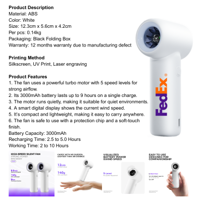 1. The fan uses a powerful turbo motor with 5 speed levels for strong airflow.