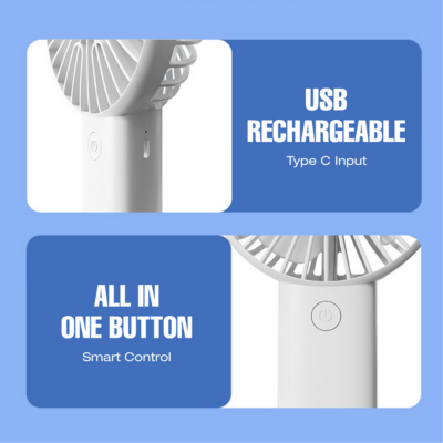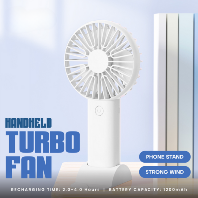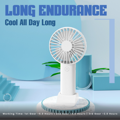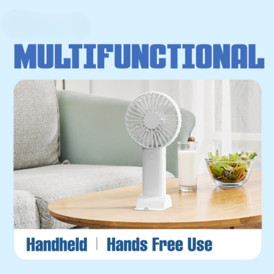 1. This fan can be handheld, placed on a desk, or used as a phone stand.