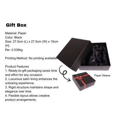 Gift Box: 27.5cm (L) x 27.5cm (W) x 10cm (H)