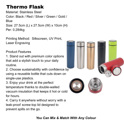 Color: Thermo Flask: Black / Red / Silver / Green / Gold / Blue