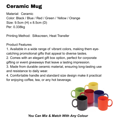 Ceramic Mug: Black / Blue / Red / Green / Yellow / Orange