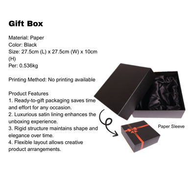 Gift Box: 27.5cm (L) x 27.5cm (W) x 10cm (H)