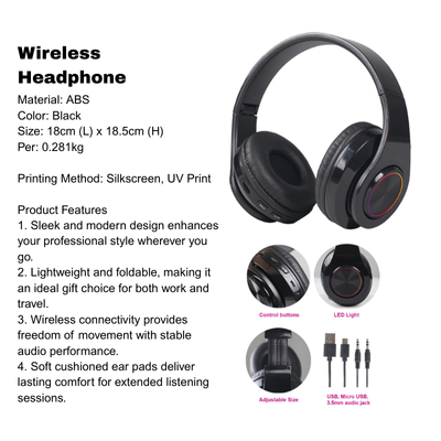 Wireless Headphone: 18cm (L) x 18.5cm (H)