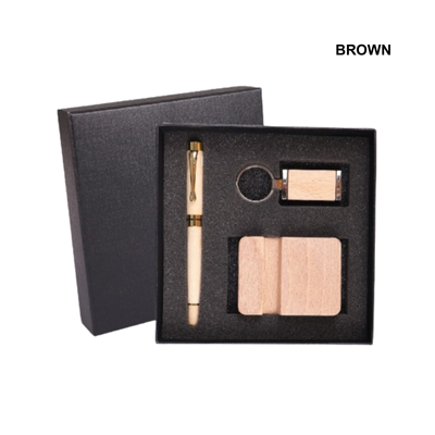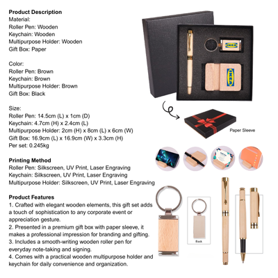 1. Crafted with elegant wooden elements, this gift set adds a touch of sophistication to any corporate event or appreciation gesture.