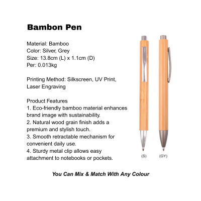 Bamboo Pen: Silkscreen, UV Print, Laser Engraving
