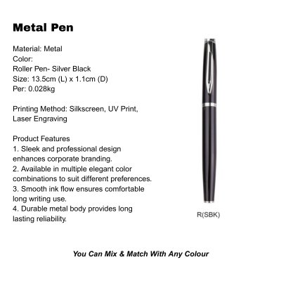 Metal Pen: Roller Pen- Silver Black