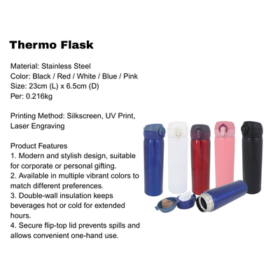 Thermo Flask: Black / Red / White / Blue / Pink