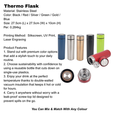 Thermo Flask: Black / Red / Silver / Green / Gold / Blue