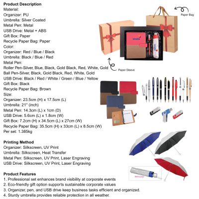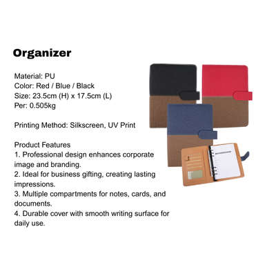 3. Organizer, pen, and USB drive keep business tasks efficient and organized.