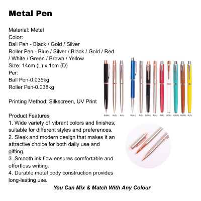 Metal Pen: Silkscreen, UV Print