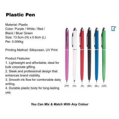 Size: Plastic Pen: 13.5cm (H) x 0.8cm (L)