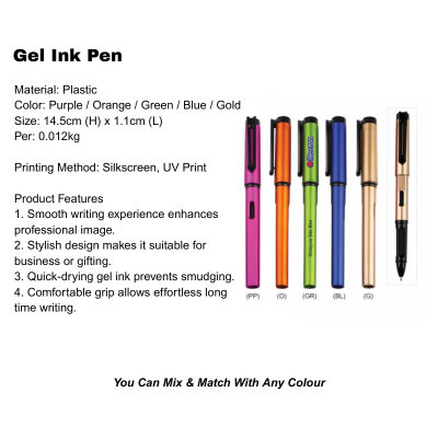 Gel Ink Pen: Silkscreen, UV Print, Laser Engraving