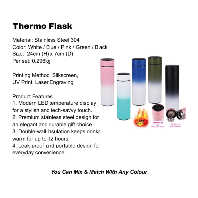 Thermo Flask: Silkscreen, UV Print, Laser Engraving