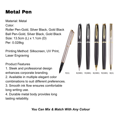 Metal Pen: Silkscreen, UV Print, Laser Engraving