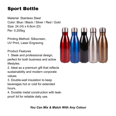 Size: Sport Bottle: 24 (H) x 6.8cm (D)