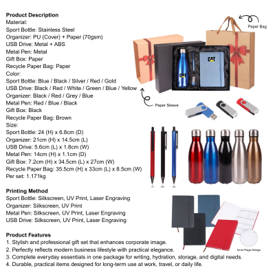 08071 Gift Set 4 in 1-Success Vision Gift Set With Recycle Paper Bag (Metal Pen, Sport Bottle, Organizer, USB Drive)