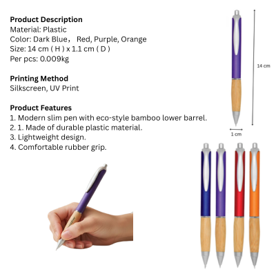 1. Modern slim pen with eco-style bamboo lower barrel.