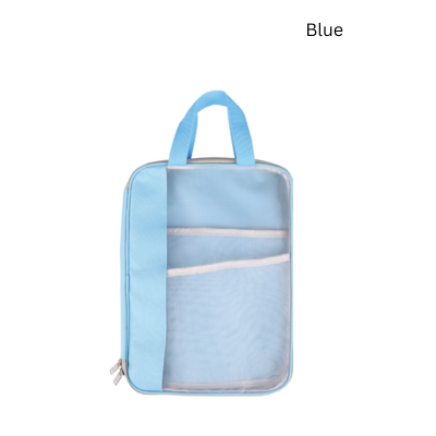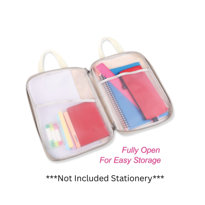2. A zip-around mechanism that allows it to lay completely flat when opened, making it easier to organize and retrieve items quickly.