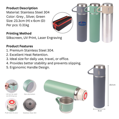08204 Stainless Steel 304 Thermo Flask 500ml with Ribbon Box – 23.3 (H) x 6cm (D)
