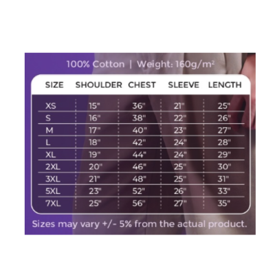 Size: XS, S, M, L, XL, 2XL, 3XL, 5XL, 7XL