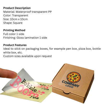 Ideal to stick on packaging boxes, for example pen box, pizza box, bottle white box, etc.