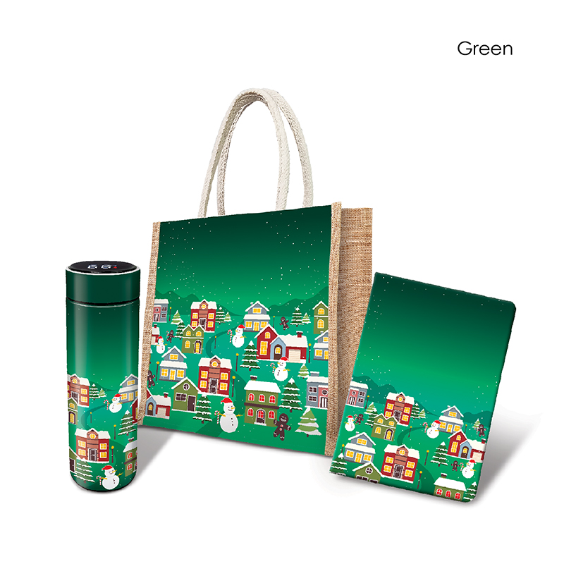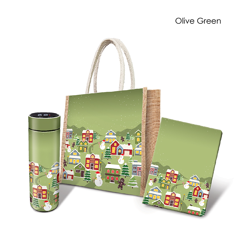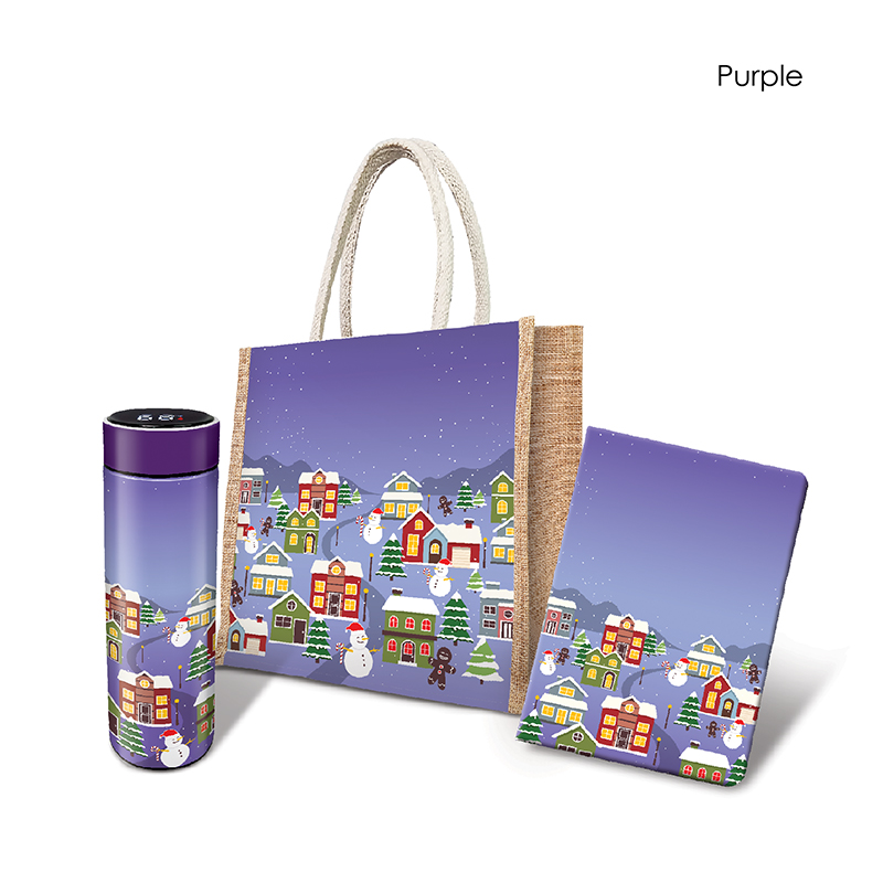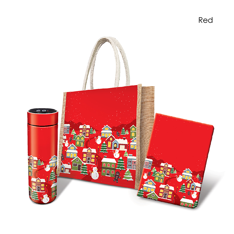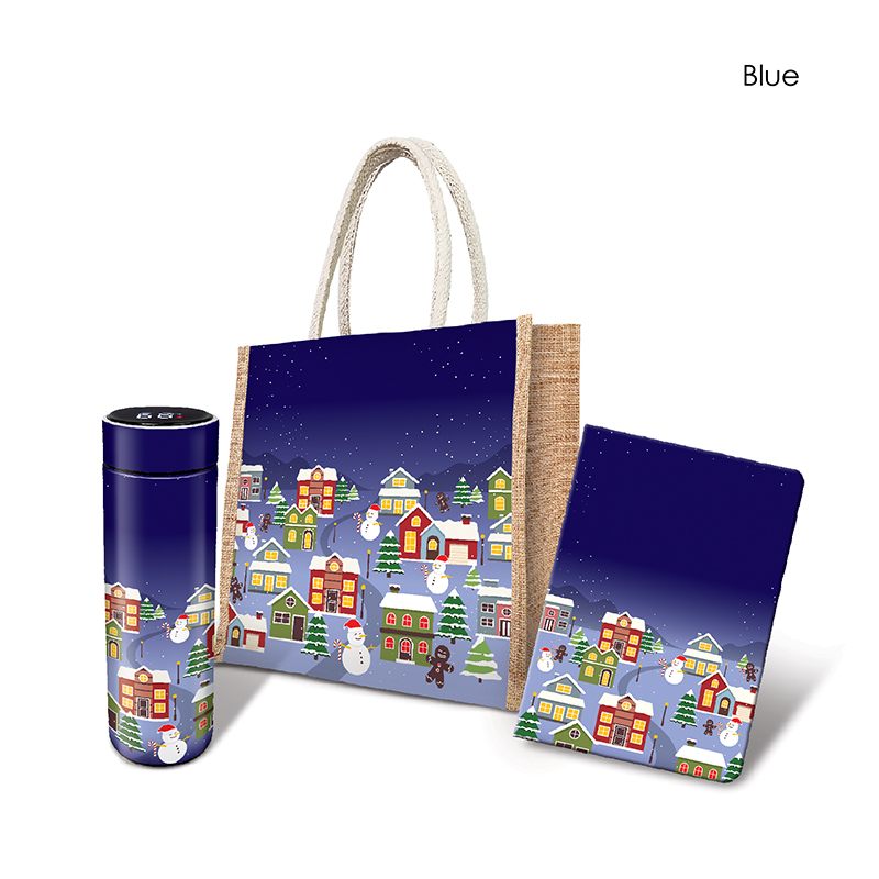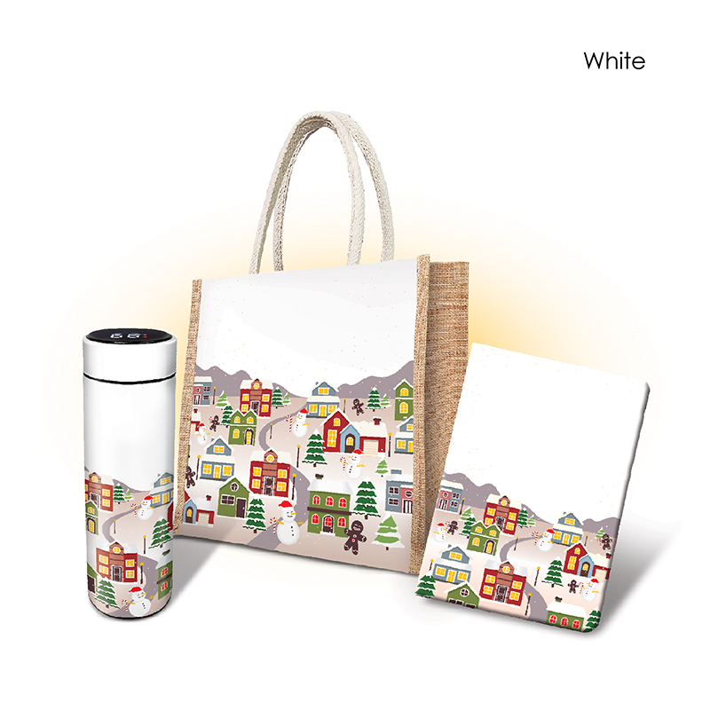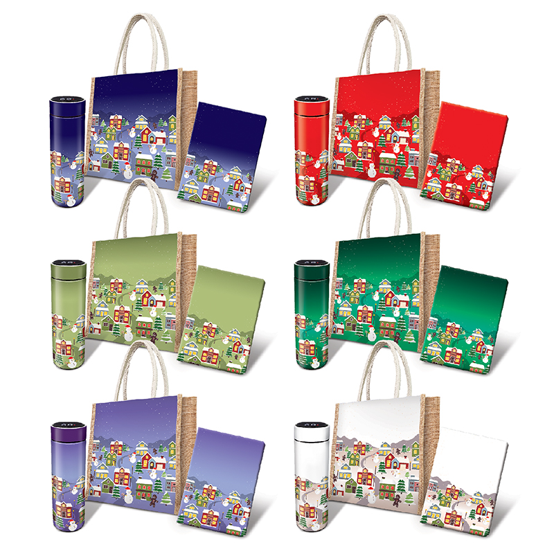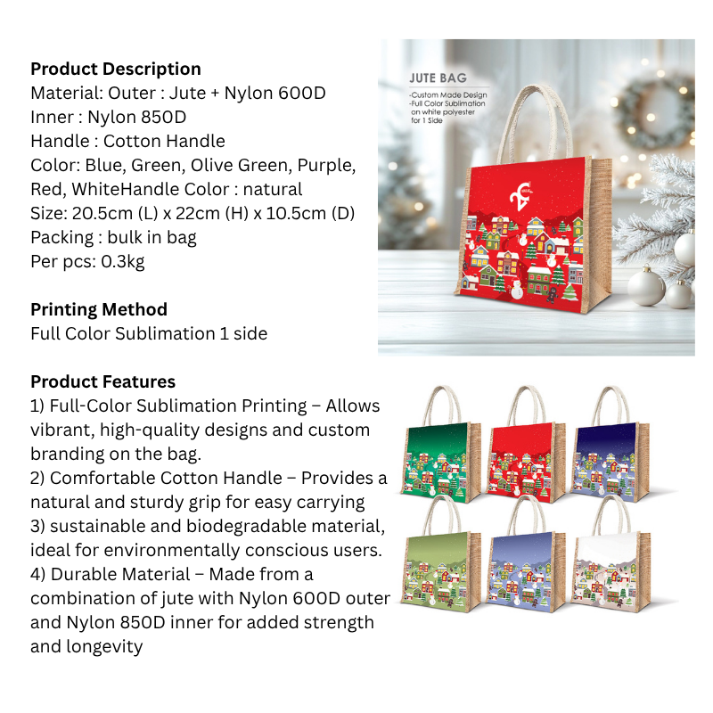 3) 25049 Winter Village Jute Bag 25cm(L) x 30cm(H)x 15cm(D)