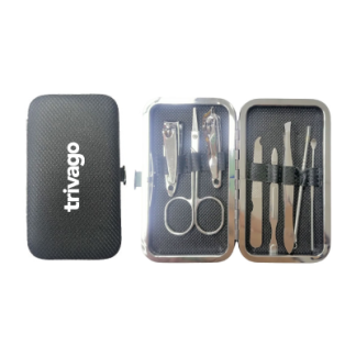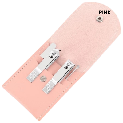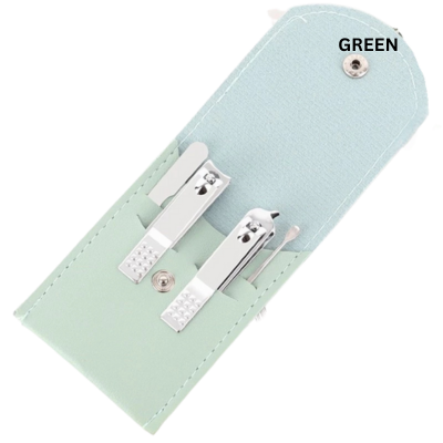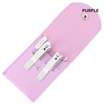 The set comes with a sleek and compact leather pouch that neatly holds all four nail tools.