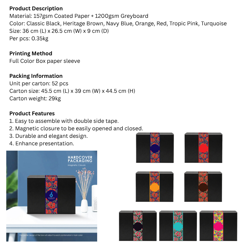 Material: 157gsm Coated Paper + 1200gsm Greyboard