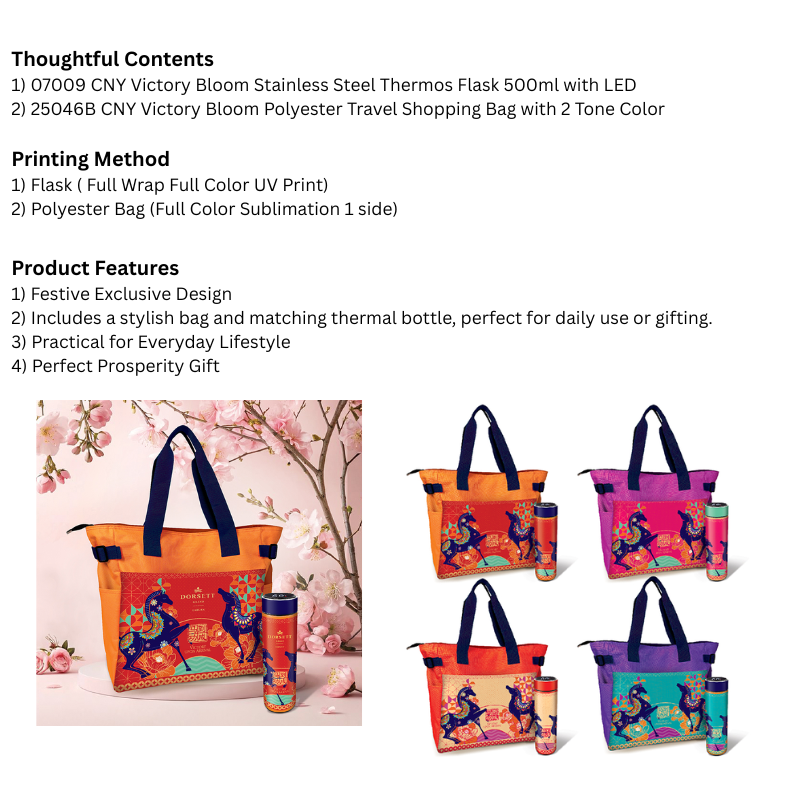 1) BS07009 CNY Victory Bloom Stainless Steel Thermos Flask 500ml with LED