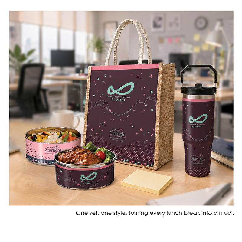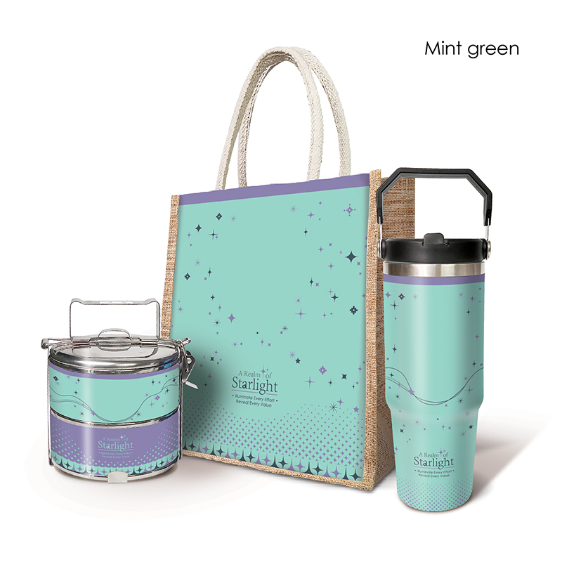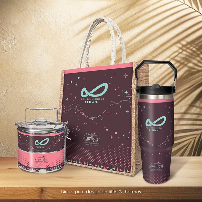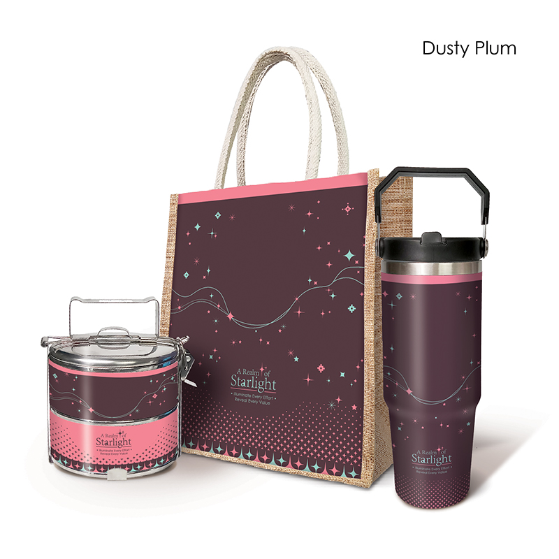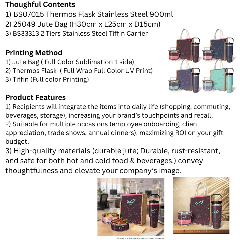 BS29114 Starlight Realm 3in1 Gift Set Thermos 900ml-Jute Bag-Tiffin- Custom Made
